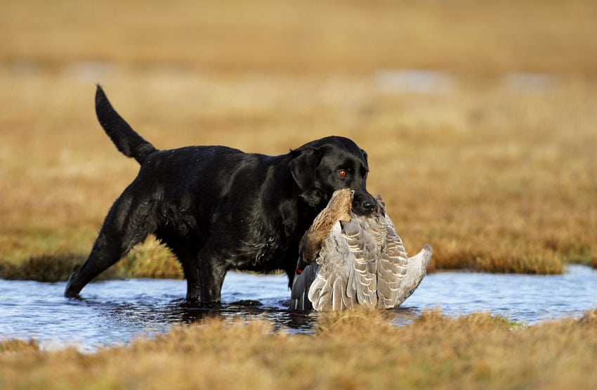 jægeren er det nødvendigt at have en veltrænet hund for at kunne jage fuglevildt.